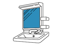 主な清掃箇所は、鏡、洗面ボウル・蛇口・排水口・収納庫表面